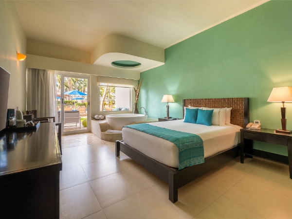 Terrace, Air conditioning, TV, Alarm clock, In-room safe, Iron, Mini-bar, Coffee maker, Offers direct access to the pool area, Near the Children's pool , In-room Jacuzzi.