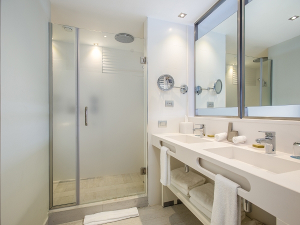 Terrace, AC and ceiling fan, TV, Telephone, Alarm clock, In-room safe, Iron, Mini-bar, Coffee maker, Direct access to the swimming pool.