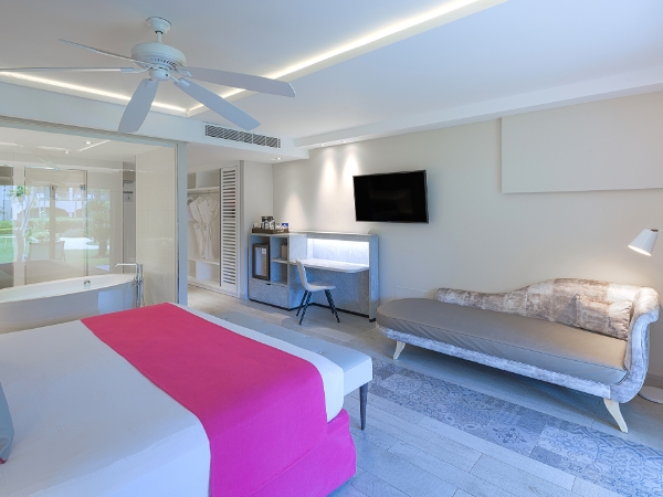 Terrace, AC and ceiling fan, TV, Telephone, Alarm clock, In-room safe, Iron, Mini-bar, Coffee maker, Direct access to the swimming pool, Welcome amenity with fruits, a bottle of sparkling wine, and chocolates (Min. 4-night stay required), Private romantic dinner for two (one per stay) (Min. 4-night stay required), Couples massage – 30 minutes (Min. 4-night stay required).