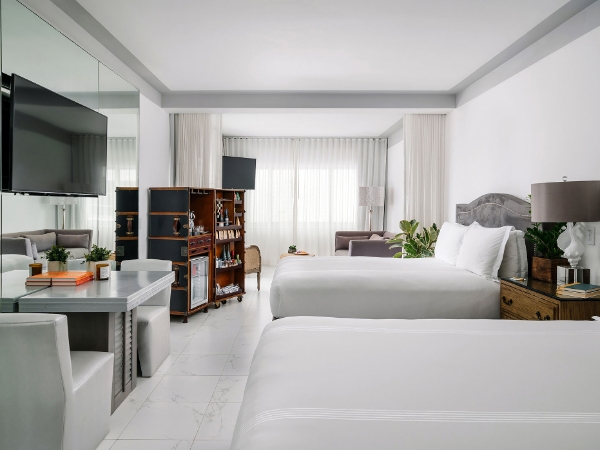Retro style meets modern luxury at the ideally situated Nautilus Sonesta Miami Beach. Originally designed in the 1950s by famed “Miami Modern” architect Morris Lapidus, this South Beach oceanfront hotel is a faithful nod to the Golden Age of midcentury oceanfront glamour. Whatever your South Beach speed—sun and sand, restaurants, shopping, art, or nightlife—there’s no better point from which to explore this dynamic area.