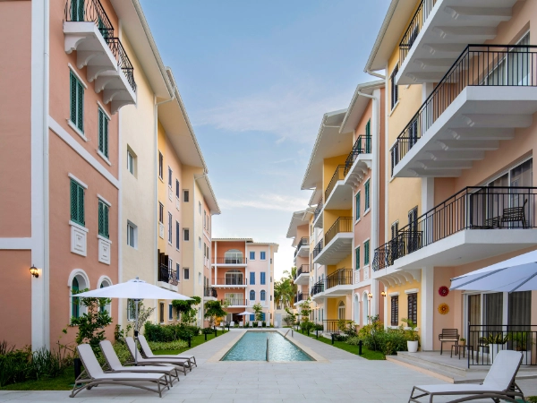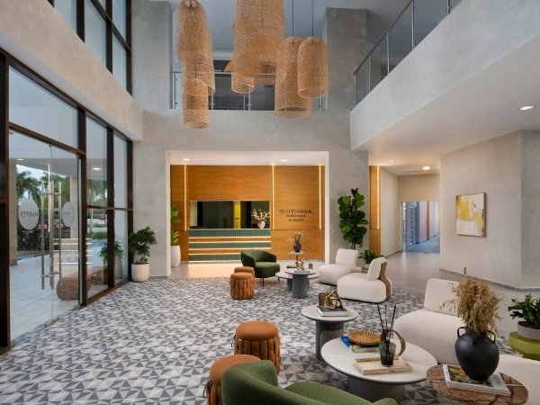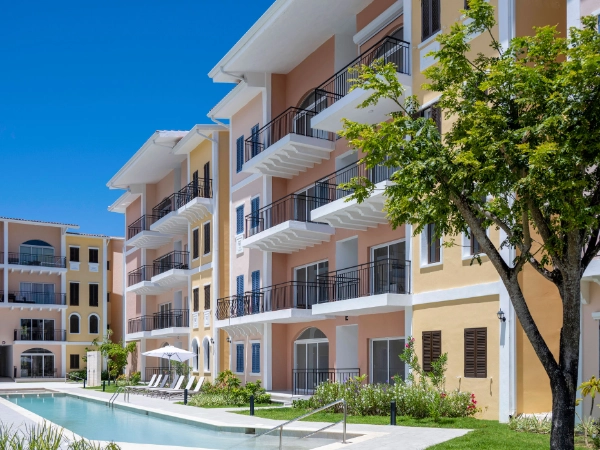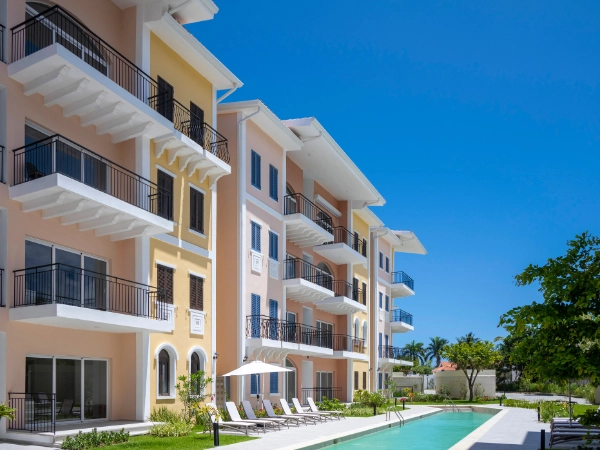 Situated in the lively Bavaro area of Punta Cana, the Reserva Real by Harper is located near the miles of pristine white sand beaches, offering ample opportunities for sun-soaked relaxation, as well as convenient access to the Downtown Mall Punta Cana, and a diverse selection of local restaurants. The hotel lies within the Cocotal Golf & Country Club. This exquisite development draws inspiration from the charming Italian town of Portofino, showcasing its distinctive architectural style. Residents and guests enjoy exclusive access to the private CIELO Beach Blub, a 27-hole golf course, a well-equipped gym, leisure facilities, swimming pools.