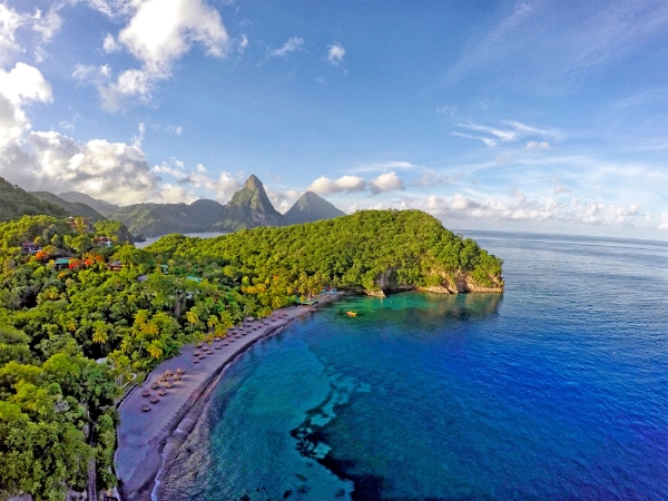 Anse Chastanet is St. Lucia's only resort property with the iconic view of both the Piti and Gros Piton mountains floating upon the Caribbean Sea.