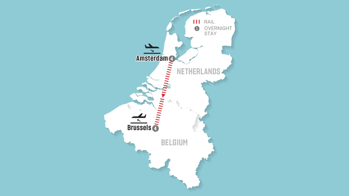 Experience the charm of Western Europe with a journey from Amsterdam to Brussels. Discover Amsterdam’s iconic canals, world-class art, and vibrant neighbourhoods before exploring Brussels’ stunning Grand Place, rich history, and famous chocolates and beers. Two captivating capitals, one unforgettable adventure.
