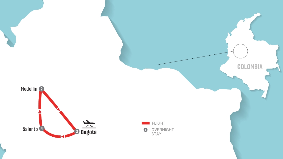 - Plane from Bogotá to Pereira, from Pereira to Medellín, from Medellín to Bogotá