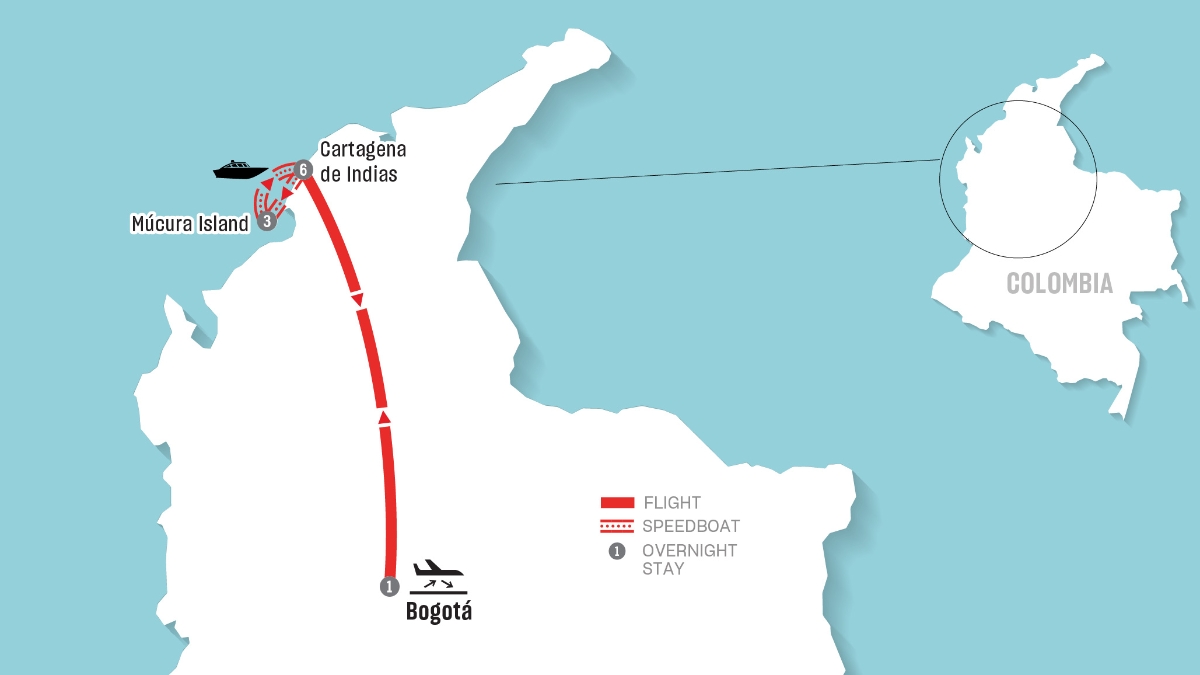 • 10 nights of accommodation (6 nights in Cartagena de Indias, 3 nights in Múcura Island, 1 night in Bogotá). Please note that your early check-in is included, therefore will count as a night at destination