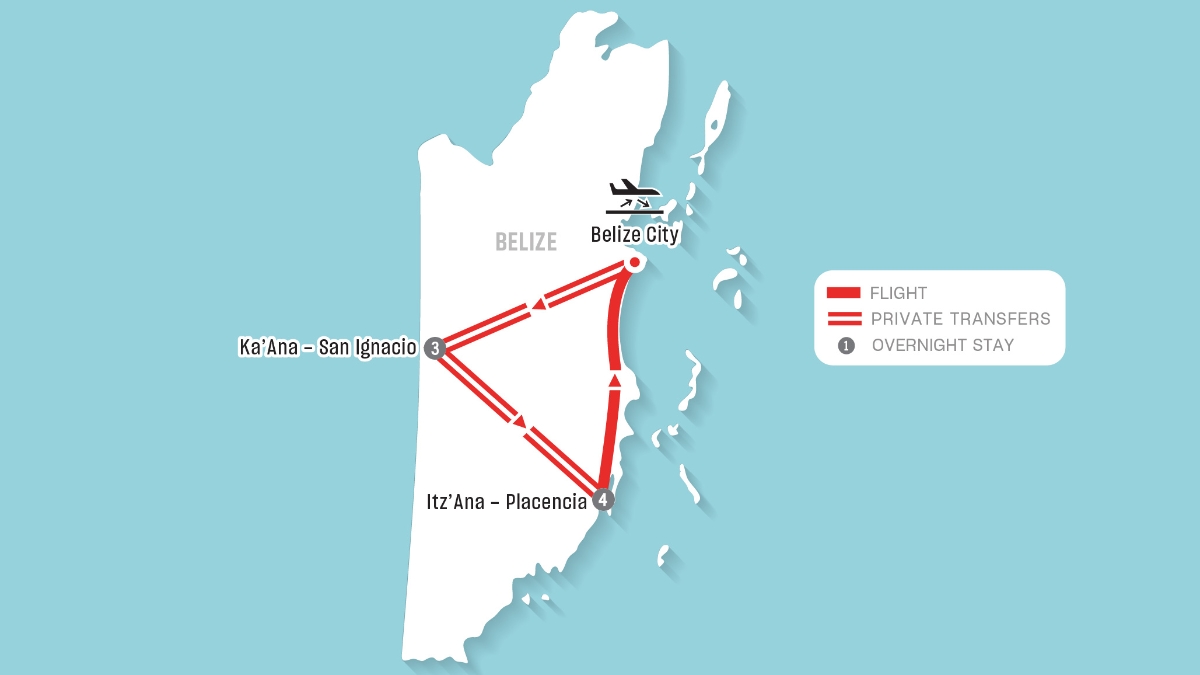 Experience an unforgettable journey through Belize, where ancient wonders, lush jungles and Caribbean coastlines await. This itinerary combines the thrill of inland exploration in San Ignacio with the laid-back charm of seaside Placencia— all seamlessly connected with comfortable transfers between locations and accommodations.