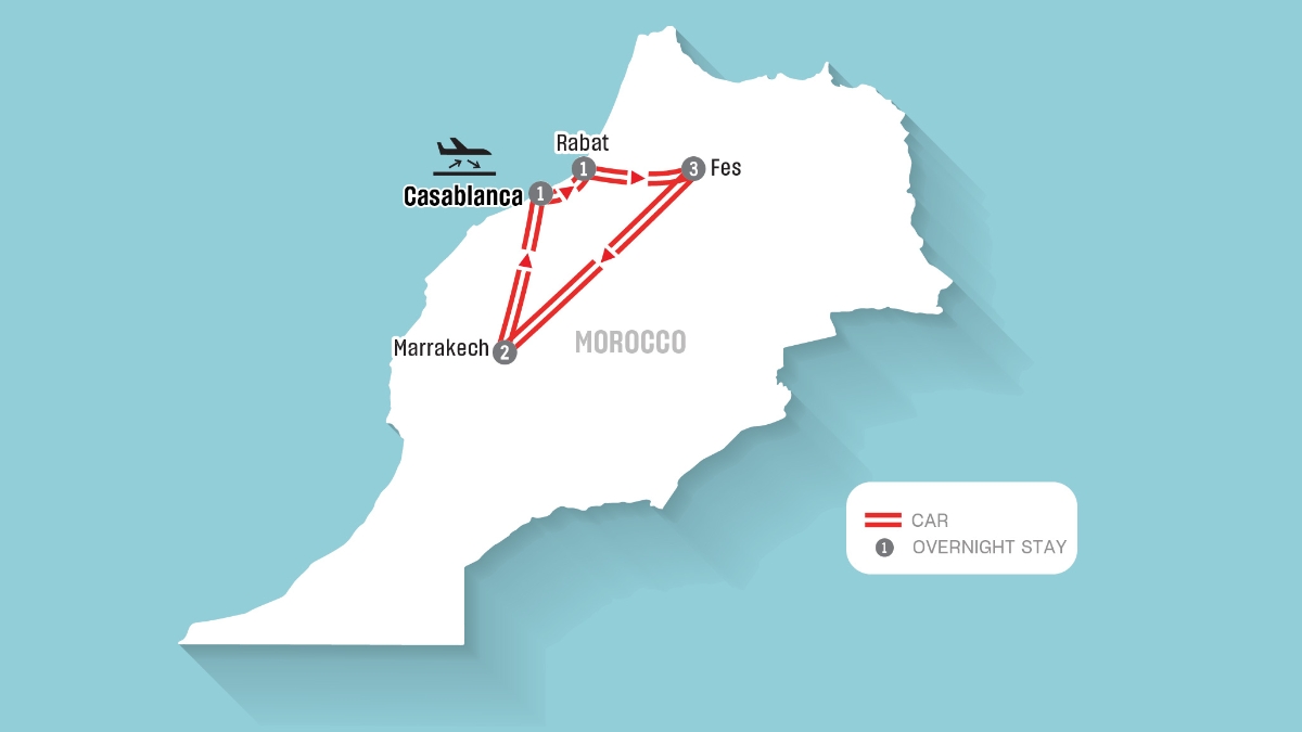 Explore Morocco’s rich culture, history, and landscapes on this 9-day journey. Visit imperial cities like Rabat, Fes and Marrakech, wander vibrant medinas and bustling souks, and pause to admire traditional crafts. Travel through scenic mountains and charming Berber villages, enjoying a perfect blend of guided tours, local experiences and leisure in this unforgettable Moroccan adventure.