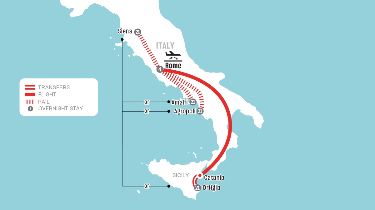 - If you selected the Sicily option, a round-trip local flight from Rome to Catania, Sicily, including transfer from your hotel in Rome to the airport, is provided.
