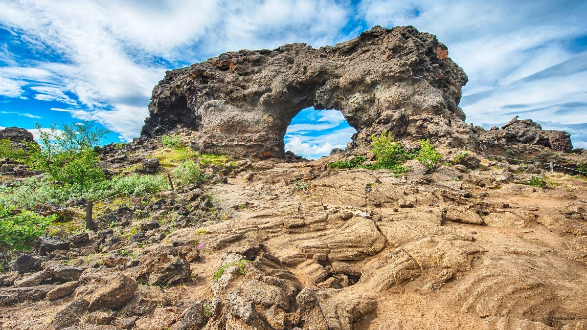 Today, you’ll set off to visit Lake Mývatn. On the way, you’ll stop at the Goðafoss waterfall, a beautiful site where the Skjálfandi River has created a stunning arrangement of cascades. Once in Mývatn, you’ll visit a range of magnificent natural sites, which are rich with birdlife. You can take a walk amidst the pseudo-craters of Skútustaðir, then navigate through the labyrinthine lava formations of Dimmuborgir, known as the "dark citadel." Next, you’ll visit the geothermal area of Námaskarð, where numerous solfataras, fumaroles and bubbling mud pots emit strong sulfuric odours. Finally, you can explore the volcanic zone of the Krafla volcano, where you'll discover the explosive crater of Víti and the extraordinary geothermal area of Leirhnjúkur.