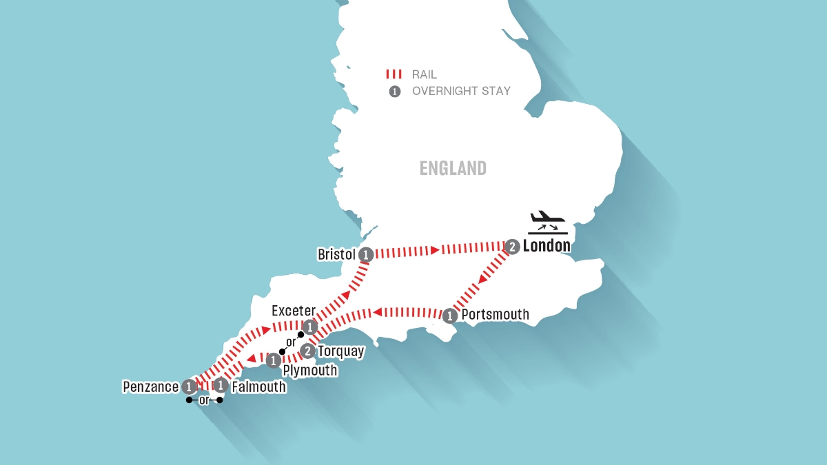 Using your included BritRail Pass, you’ll navigate this self-guided itinerary to Devon and Cornwall, two neighbouring counties in the far southwest of England, known for their dramatic coastlines, historic sites and distinct regional cultures.
