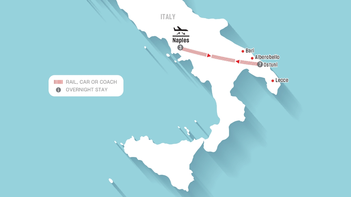 • Round-trip transfers from the hotel in Naples to Ostuni