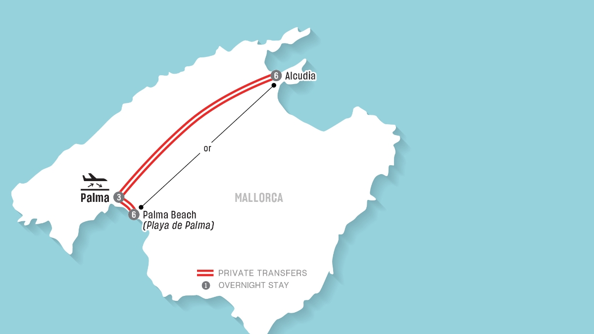 - 3 nights Palma City accommodation in selected category and 6 nights Alcúdia Beach accommodation in selected category