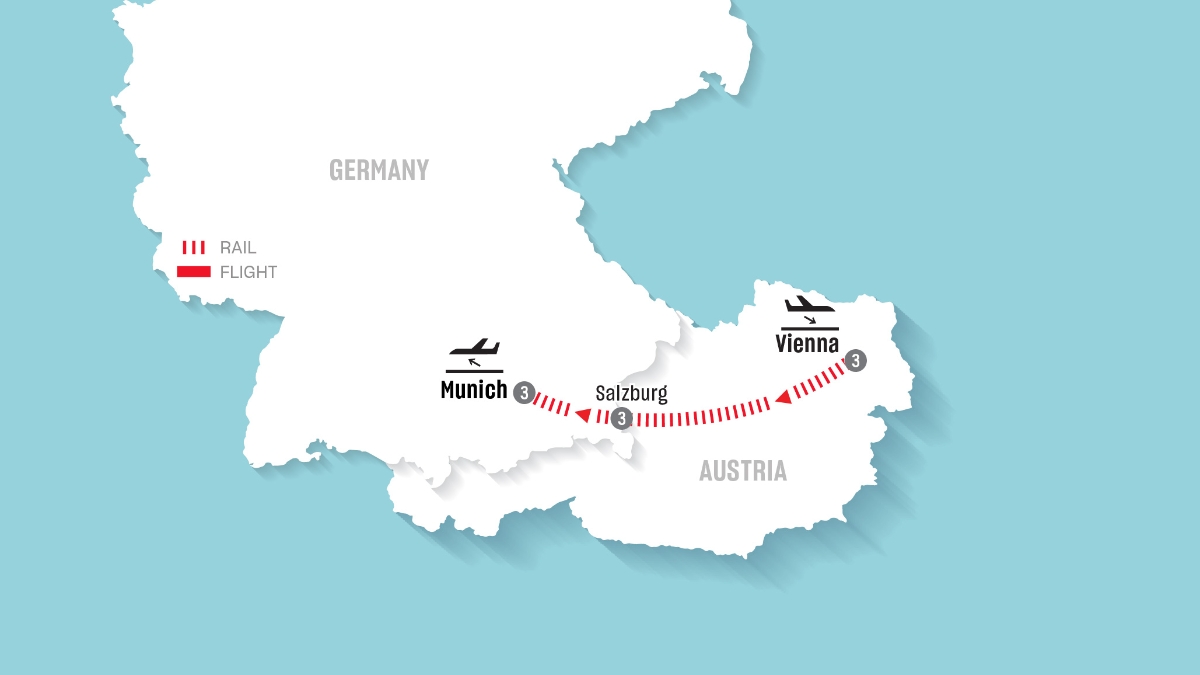 - Private airport transfers, arrival in Vienna and departure in Munich